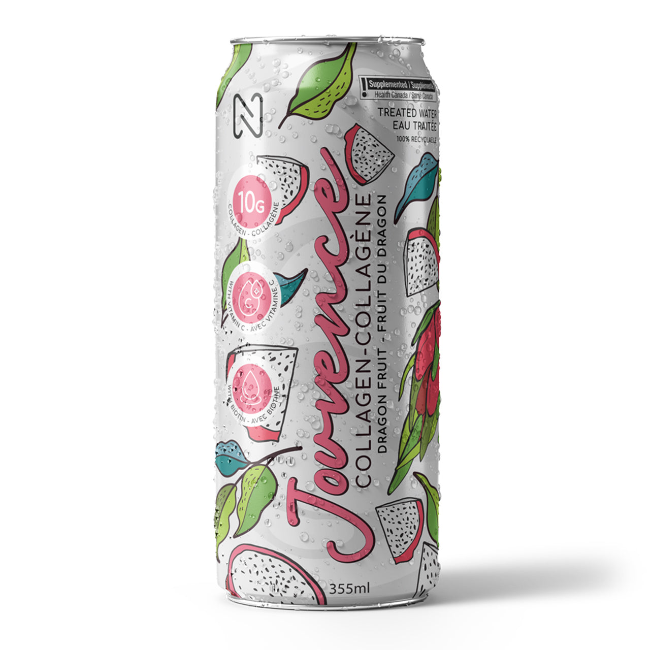 Dans chaque canette de 355 ml, Jouvence vous offre une généreuse dose de 10 grammes de collagène, enrichi de vitamine C et de biotine, le tout dans une base d’eau osmosée. Cette combinaison d’ingrédients exceptionnelle vous procure tout ce dont vous avez besoin pour prendre soin de vos cheveux, de vos ongles et obtenir une peau rayonnante !